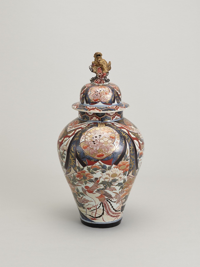 色絵獅子鳳凰文獅子鈕有蓋大壺