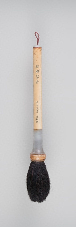 孫枝発銘象牙白玉管提筆