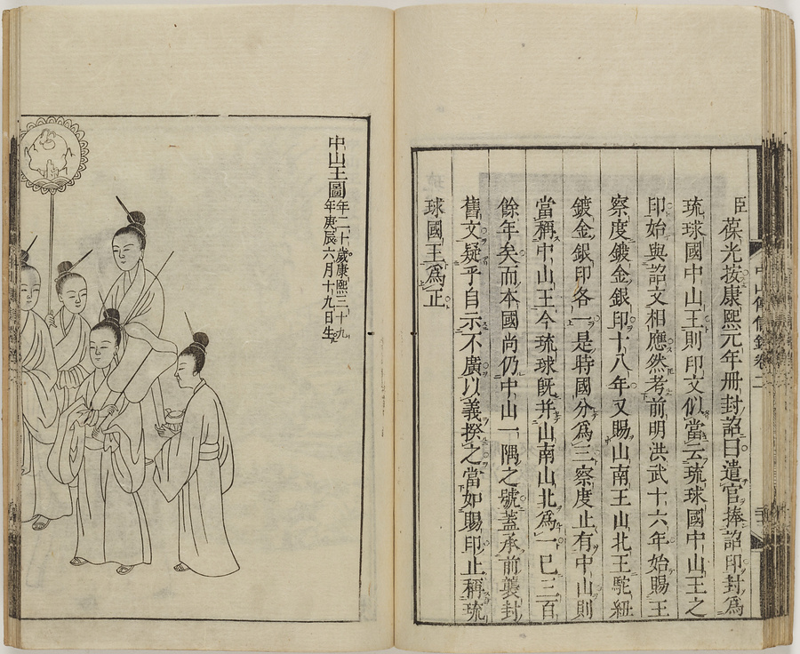 本作品は、徐葆光(?-1723)の『中山伝信録』を日本において重刻したもの。明和3年5月、京都の版元、文錦堂の林伊兵衛が出版した。著者の徐葆光は江蘇省出身の官僚で、康煕58年(1719)6月1日、冊封副使として、歴代最多の649名の一行とともに、琉球に来島した。滞在中、徐葆光は琉球各地を巡遊し、中山王の系譜から、琉球の地理、王府の制度や儀礼、琉球の風俗に至るまで調査したという。第1巻は航海に関する内容。第2巻は冊封の儀礼に関する内容。第3巻は中山王の系譜についての内容。第4巻は地理に関する内容。第5巻は制度に関する内容。第6巻は琉球の風俗や琉球語に関する内容である。江戸でも出版され、琉球に関する知識が広く伝えられた。
