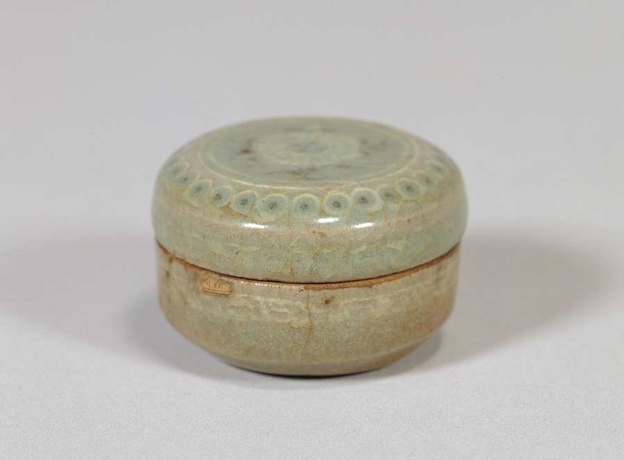 青磁象嵌菊花文合子