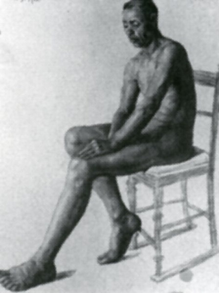 椅子に坐る男性裸像