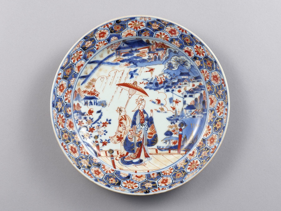 色絵傘持婦人山水図皿をもっと見る