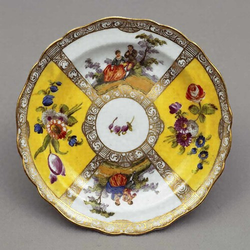 色絵人物草花文輪花皿 ドイツ・マイセン