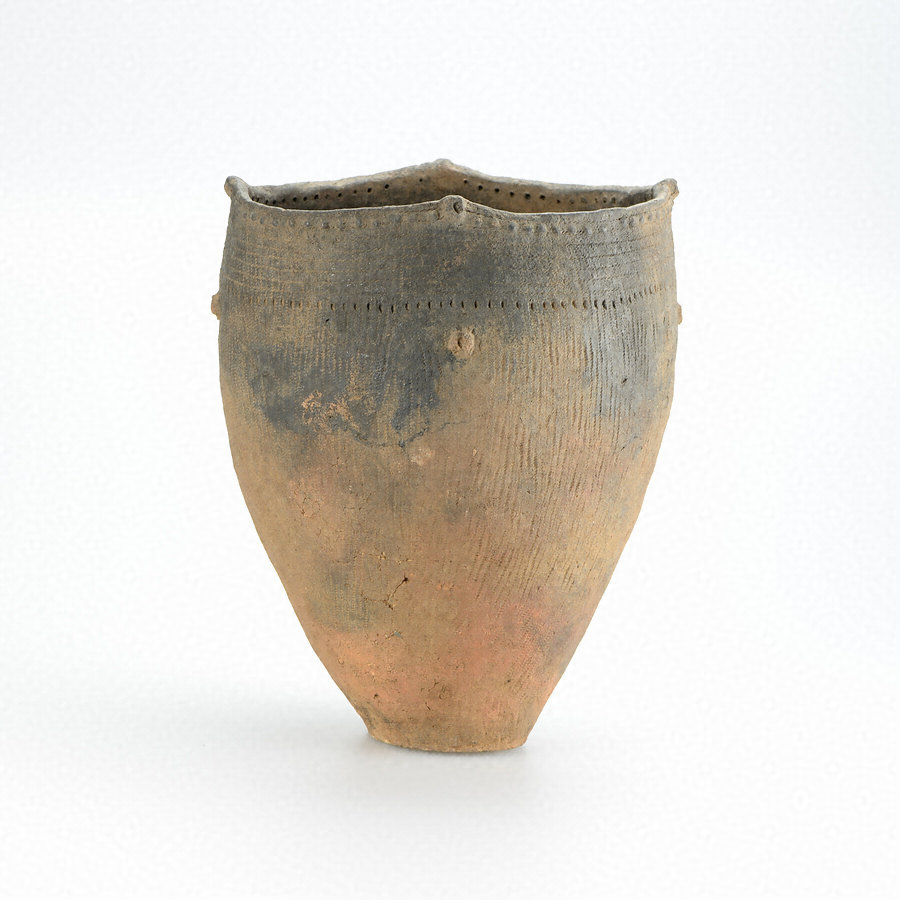 続縄文時代前期の土坑墓から出土した石器と土器の一括資料である。土器は宇津内Ⅱa式土器で、特に中形土器2点(写真後列)は僅かな欠け、ひびを除いてほぼ完形の状態を保っている。重要文化財「北海道常呂川河口遺跡墓坑出土品」の構成資料。