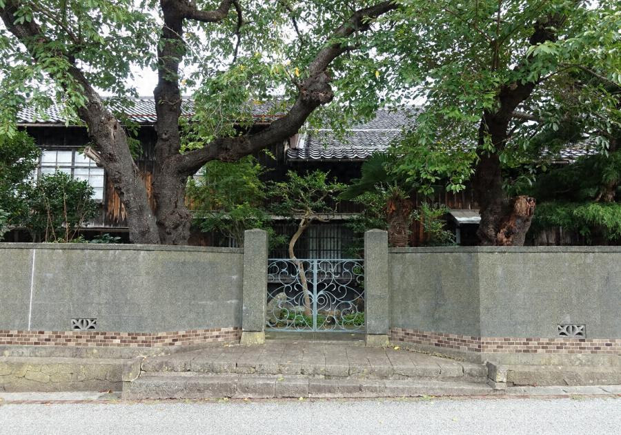 敷地南辺、主屋入口のやや西側で通りから後退して開く門と、東西にのびる塀。明治期とみられる緻密な切石積基礎上に建ち、門はコンクリート製の門柱を立てて鉄扉を開く。塀は布石上のコンクリートブロック積にモルタル仕上とする。旧家の表構えを形成する。