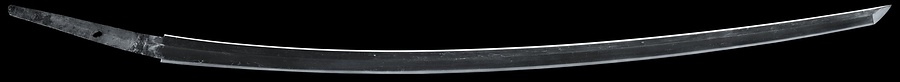 この太刀は、平安時代の武士、源頼政(みなもとのよりまさ)が鵺(ぬえ)という妖怪を退治した功績により、天皇から賜ったと伝えられています。刀身は細身で反りが強く、平安時代後期の古風な姿を示しています。刃文は、まっすぐに伸びた直刃(すぐは)というかたちで、簡潔な美しさが見てとれます。