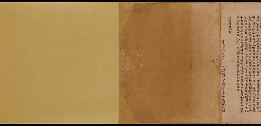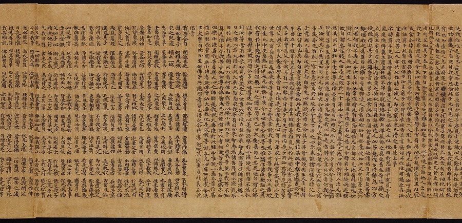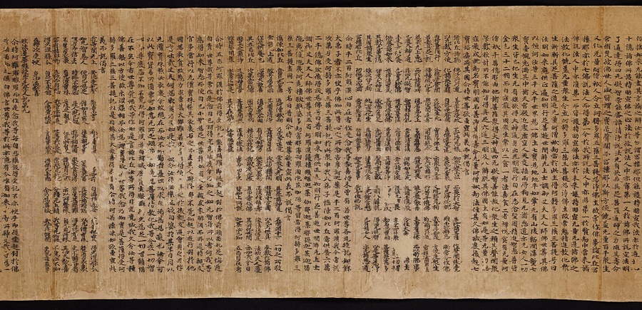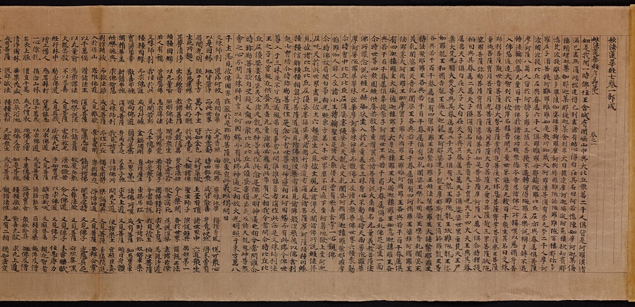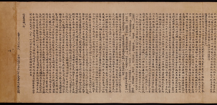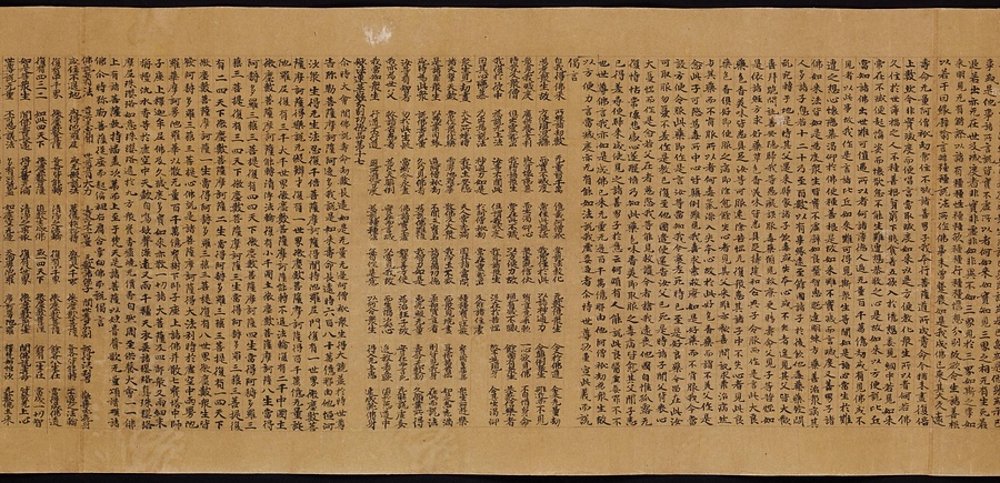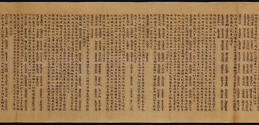 経典の末尾には694年に中国・長安、現在の西安の住人であった李元恵(りげんけい)という人物が書き写したと記されており、制作年代と書き写した人物が判明する点でも貴重な作品です。