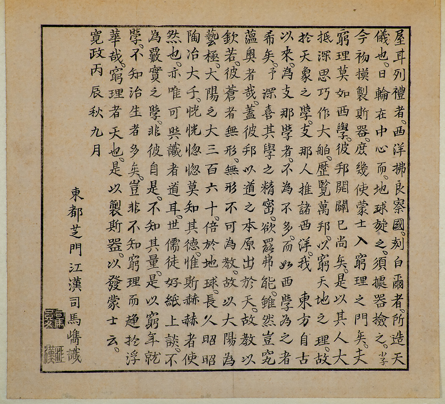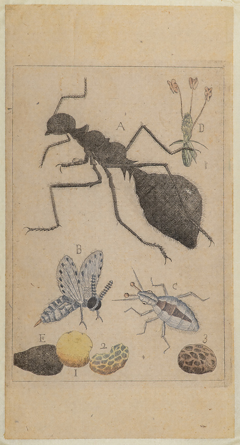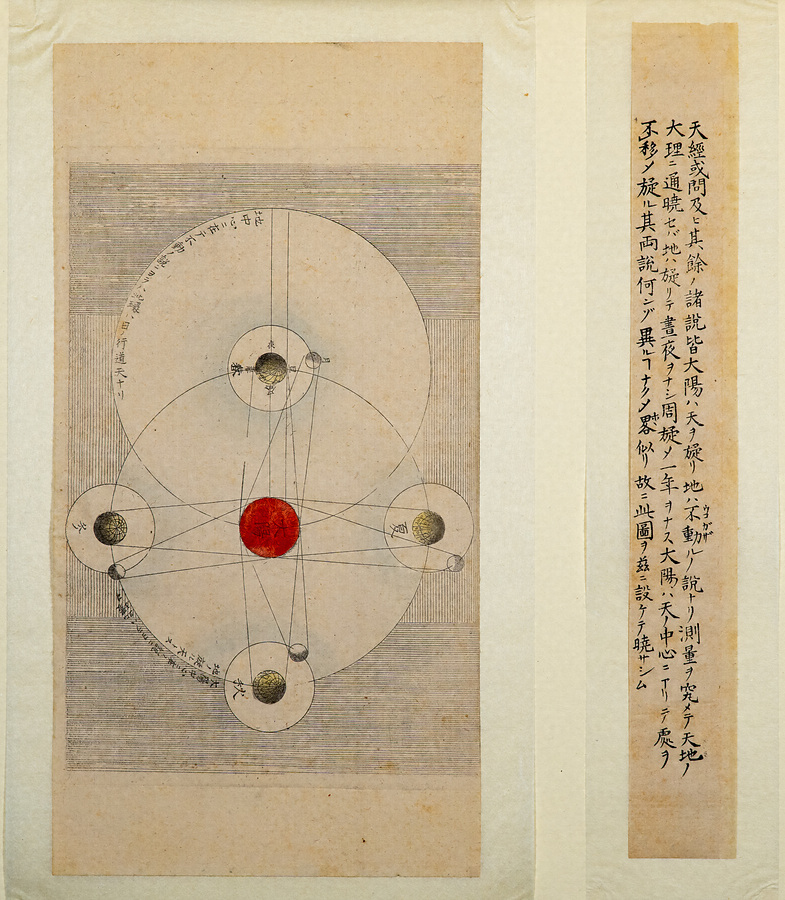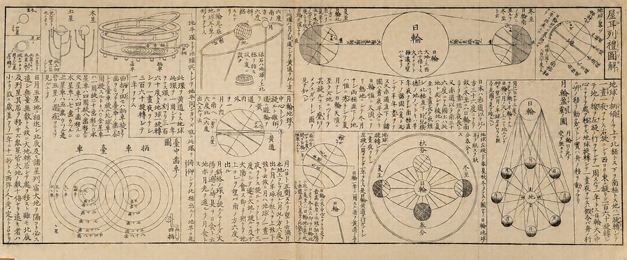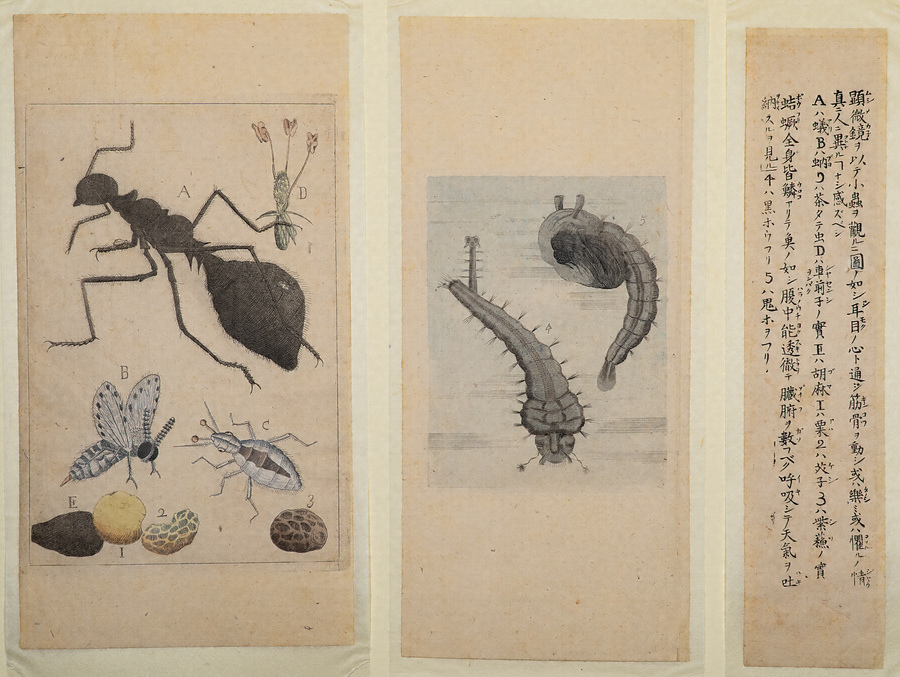 木版・銅版12点22枚から構成されています。主体は10枚の銅版画で、それぞれに木版の解説文が付属しています。その多くは太陽系の諸天体の運行などに関するものですが、中にはアリなどの虫類を描いた唐突な画題のものも含まれています。個々の図版の制作年そのものは検討の余地があるとはいえ、これをひとまとめに刊行する段階で、司馬江漢はそれなりのコンセプトをもって臨んだと思われます。江漢がこだわっていた、独特な水火二元論と啓蒙意識が入り交じった宇宙観を図式化しようという試みと言えます。