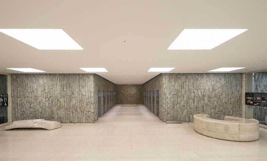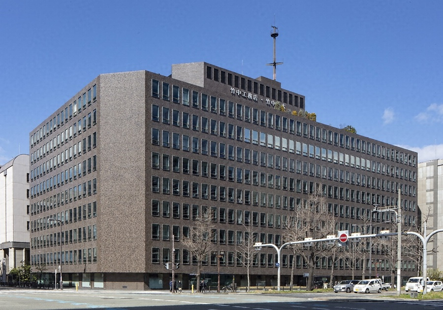 御堂筋と本町通の交差点角に建つオフィスビル。設計は竹中工務店設計部。センターコアを採用し、フルウェブ梁や軽量コンクリートなど当時の技術を駆使し大スパン構造を実現。単窓を繰返した壁面に茶、灰、土の3色の磁器タイル貼で格調高い外観に仕上げる。