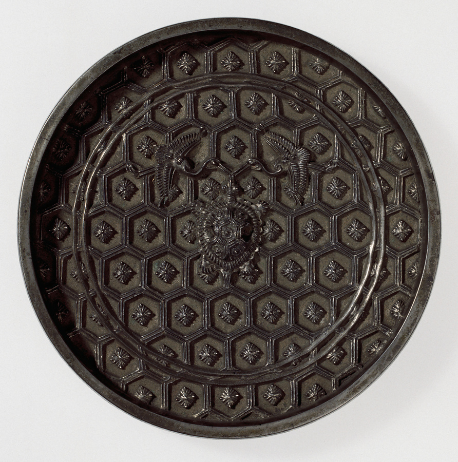 桜花山吹双鳥鏡(線刻男神鏡像)