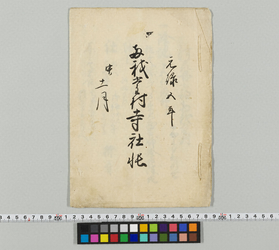 東我堂村と西我堂村に所在した神社と寺院について記したもの。境内にある建物の名称と規模が記載されている。この資料より、我堂八幡宮の境内に神宮寺が存在したことがわかる。