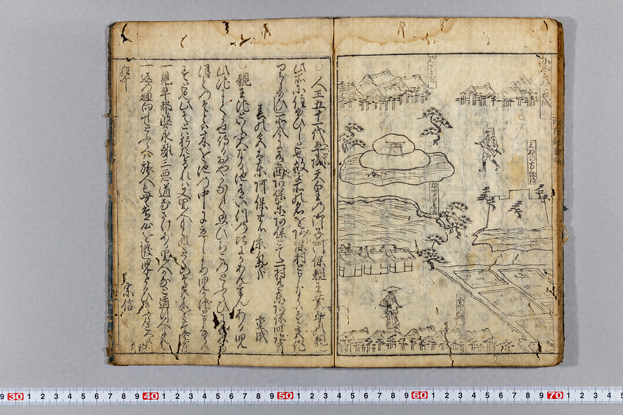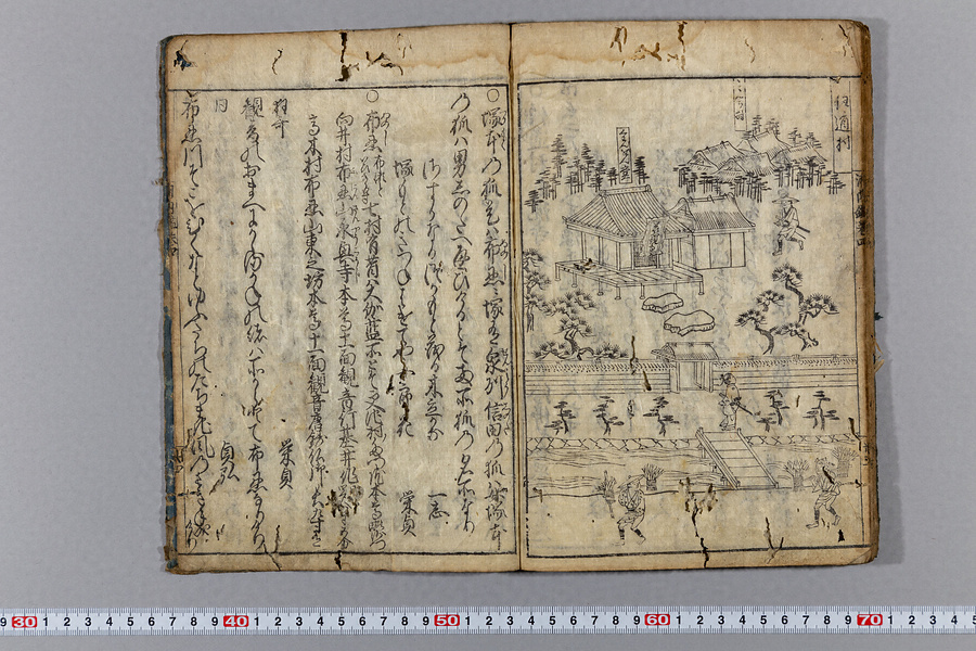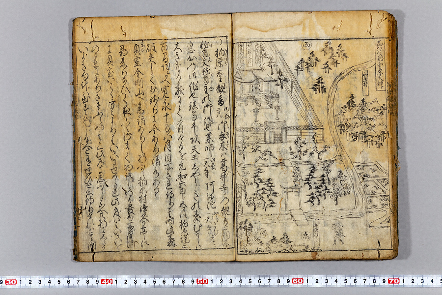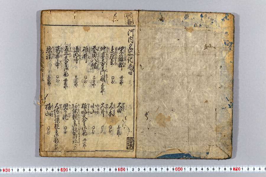 延宝7年(1679)に出版された『河内鑑名所記』を改訂し後に出版されたもの。複数巻のうちの1冊であり、刊記・奥付がないため、出版年は不明である。稚児ヶ池を描いた挿図には、阿保親王御廟として河内大塚山古墳も描かれている。