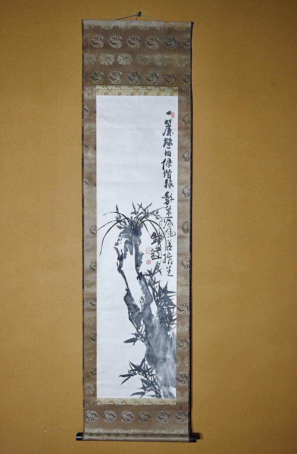 掛軸/蘭岩図/富岡鉄斎