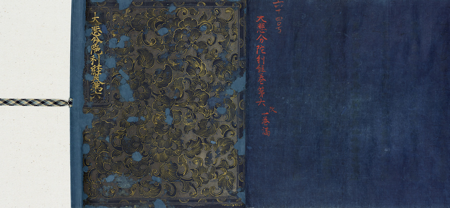 奥州平泉の藤原清衡(一〇五六ー一一二八)の発願により書写された紺紙金銀字一切経の遺品。従来より、この一切経を最初に納めた寺が中尊寺と考えられてきたので、これを一般に「中尊寺経」と呼んでいる。書写事業が始まったのは永久五年(一一一七)二月で、九年後の天治三年(一一二六)三月までにはその完成をみている。遺例の少ない紺紙金銀交書経であるとともに見返し絵などは同時代のまとまった絵画群として再評価が進められている。