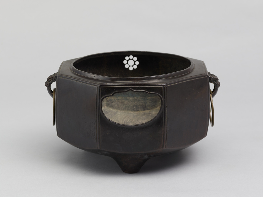 唐銅鬼面鐶付六角風鑪