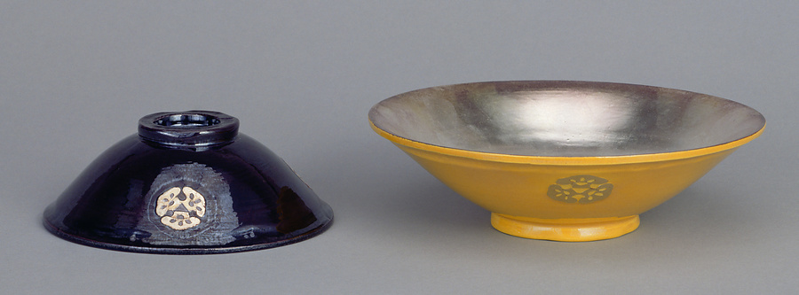 鴻池家伝来永楽関係資料 交趾釉金箔押三ツ松紋散杯(紫)