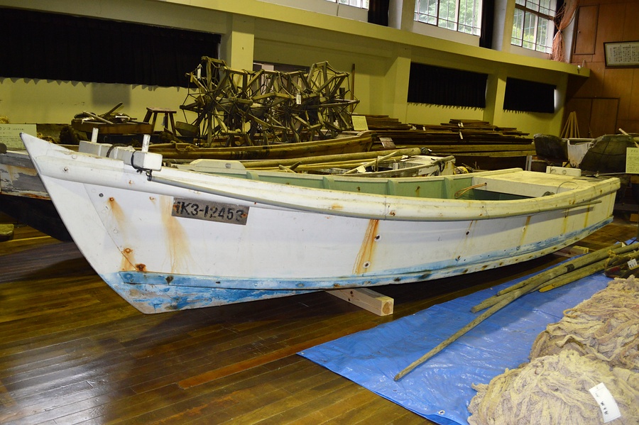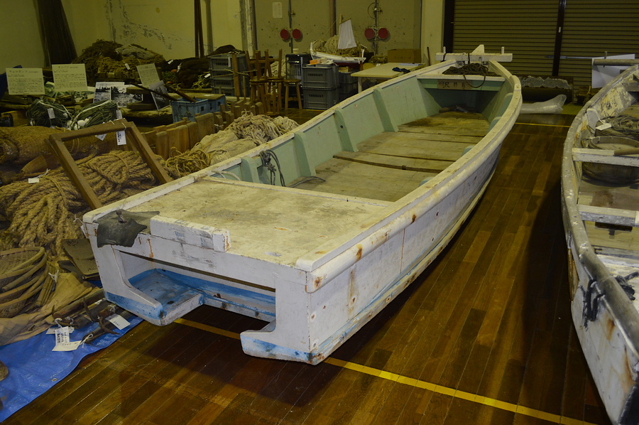 二枚棚構造(三枚底)の小型の和船。本資料は能登半島東側沿岸で富山湾に面した能登灘浦型のテンマで、能登半島西側沿岸の能登外浦型のテンマとは異なり、構造は氷見型のテンマに近い。