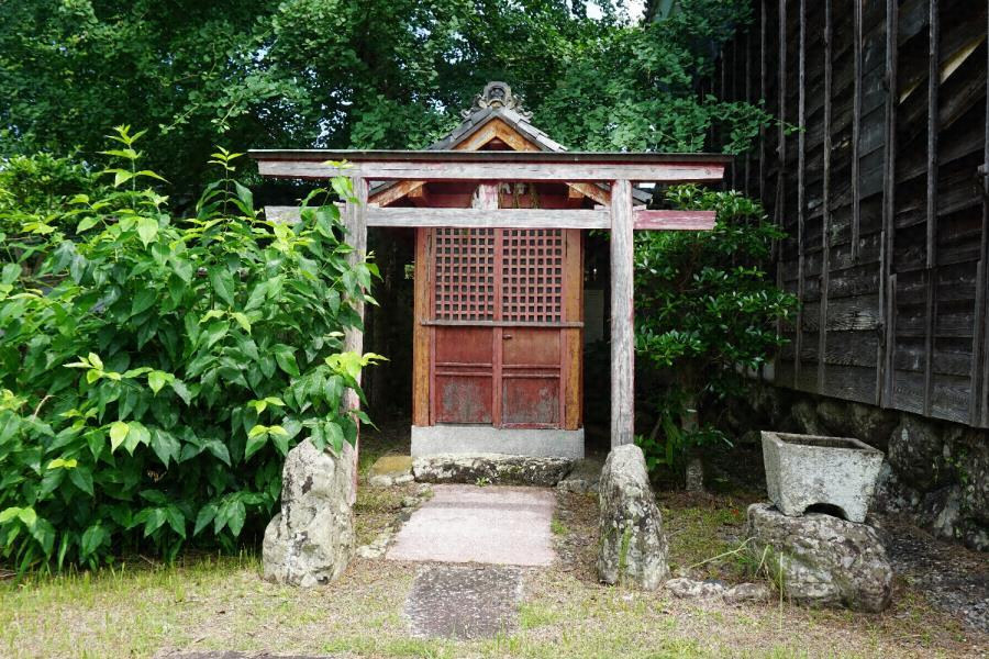 南蔵の西に南面して建つ屋敷社である。覆屋はコンクリート基礎に建つ切妻造桟瓦葺の妻入で、正面に上部格子の板扉を両開きに吊り込む。背面壁下部には狐が通う孔を穿つ。内部の祠は一間社流見世棚造で屋根は流し板葺である。敷地南方のアクセントとなる。