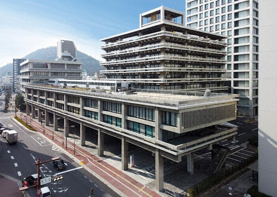 高松市の中心地に位置する。昭和33年の建築で、建築家丹下健三が模索した、鉄筋コンクリート造による日本の伝統建築の表現を、柱や梁(はり)、庇(ひさし)からなる軽やかな意匠で達成した。低層の東館と高層の本館を組み合わせ、一階を階高の高いピロティとロビーとして県民に開かれた庁舎とし、本館中央にエレベータや設備を集中させたコアをつくって他をフリープランとするなど、その後全国で建築された庁舎建築の模範となった。芸術家との協働による壁画や家具等もよく残る。