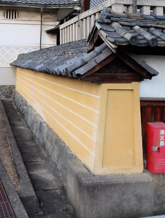 敷地南面西塀から宝蔵の間に建ち、境内西面南半を画す塀。延長12メートル、自然石基礎としたコンクリートブロック造の塀で屋根桟瓦葺。外壁は外を黄土色モルタル塗で5筋の定規筋を付し、内を漆喰塗仕上とする。重厚な外観で寺院境内の表構えをつくる塀。