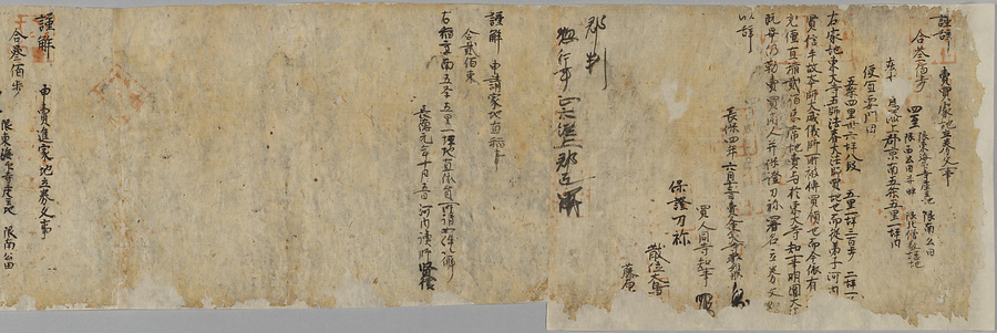 巻子:平安時代 一紙文書:平安~鎌倉時代 巻子:天暦8年(954)~長保4年(1002) 一紙文書(各):久安4年(1148) 宝治3年(1249) 文永8年(1271)