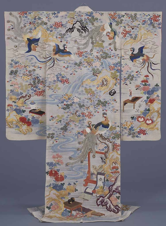白麻地御所解(琴棋書画)文様振袖帷子