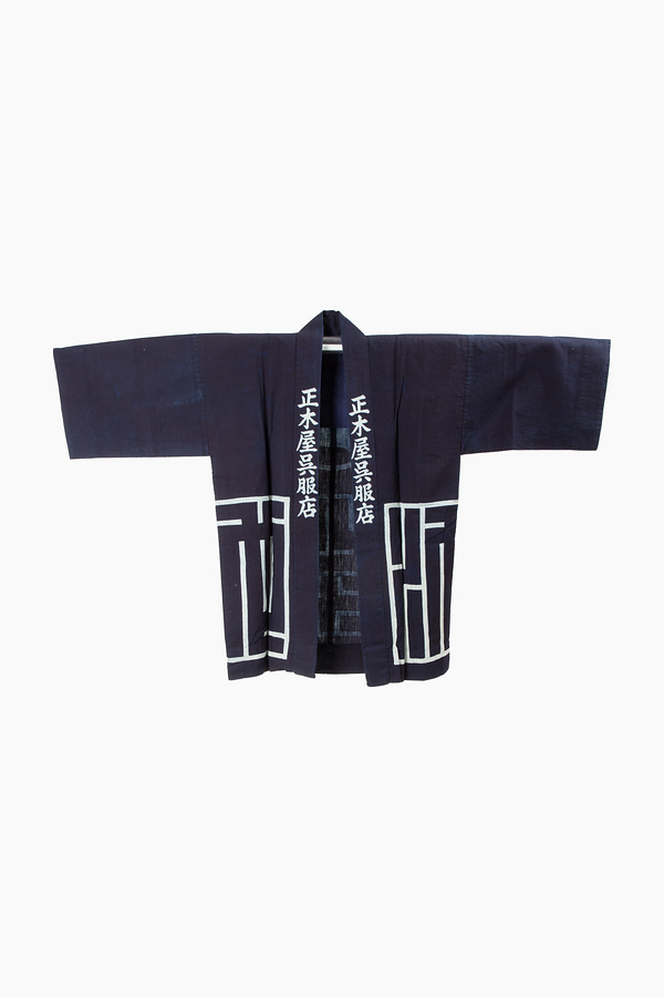 印半纏は、衿に店の屋号を、背中に紋などを染め抜いたもの。特に背中の文字や記号を組みあわせた印は、ひときわ大きく目を引く。印半纏は、大工や鳶、庭師(造園業)などの職人が、出入りの商店からもらった。そのため、一人の職人が出入りをした複数の店の半纏を所持することになった。店から頼まれて仕事をするときは、印半纏を羽織って通った。店で人手が必要になる暮れや初荷(初売り)、祝儀・不祝儀(葬式)のときなどは、印半纏を着て手伝いにでかけた。