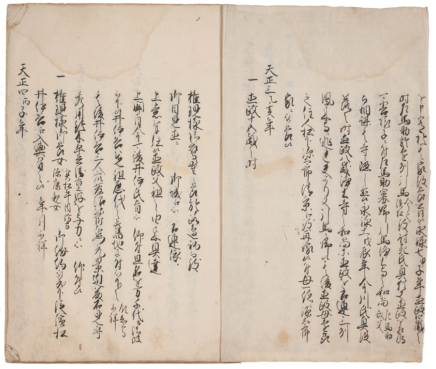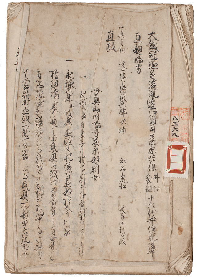 江戸幕府による各大名・旗本の家譜編纂事業に伴い、彦根藩から幕府に提出した井伊家の系譜の写し。本資料には、彦根藩井伊家初代直政から11代直中までの井伊家の系譜が記されています。