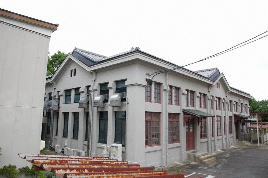 校地南西隅に建つ鉄筋コンクリート造の旧講堂。寄棟造桟瓦葺で四面に切妻破風を立ち上げ、縦長のガラス窓が上下に意匠を変えて並ぶ。窓間の壁の柱頭飾りや軒持送などの装飾を施してセセッション調にまとめた外観をよく残し、大正期の講堂建築の好例である。