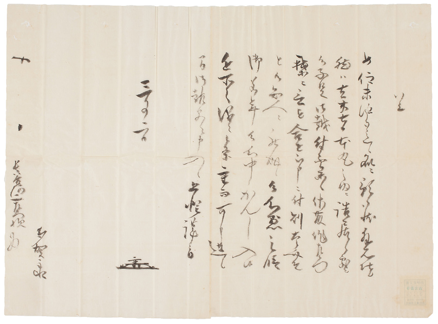 彦根藩士本多七左衛門家から藩に提出された文書類の写の一つ。多賀主水から長谷川仁左衛門へ宛てられた書状の写し。本資料では、島原の乱において、主水が本丸の内へ詰ていたところ、仁左衛門の子息(太郎助)が来て、若年ながら心懸けに感じ入ったと述べています。