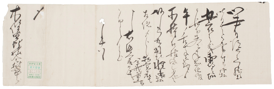母衣について届書。彦根藩士今村源右衛門家10代目義重が同藩士木俣亘理に提出したものです。母衣の牛の舌は先代より所持しているものであること、姓名は私が認めたもので、私の実名は義重であることが記されています。