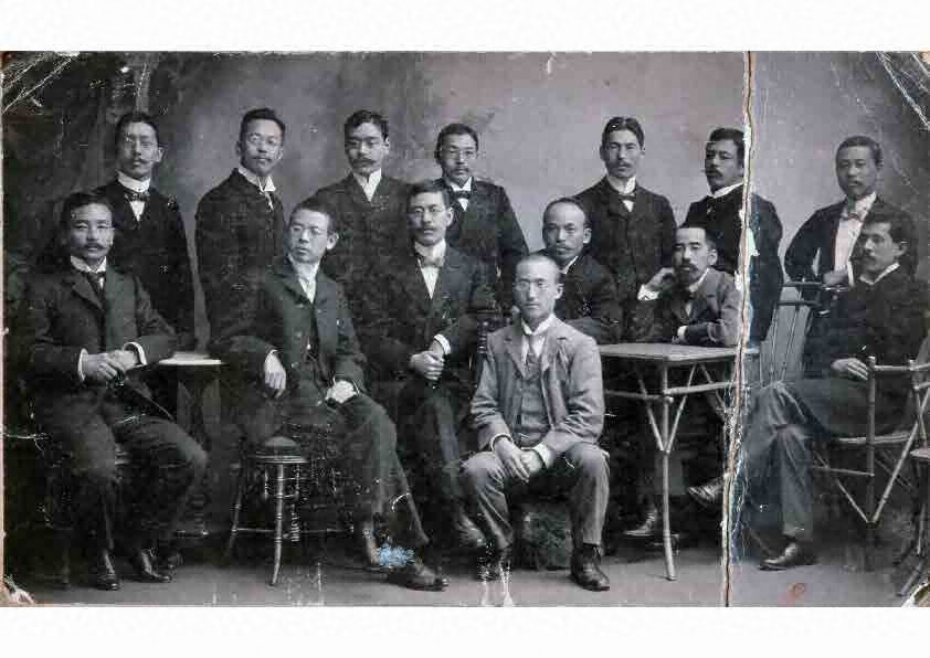ドイツ留学中、廉太郎は病のためやむなく帰国することになり、留学していた同志たちが別れを惜しみ送別会を開いた。前列の左から二人目が廉太郎で、帰国後は、療養のため大分市で暮らすことになった。