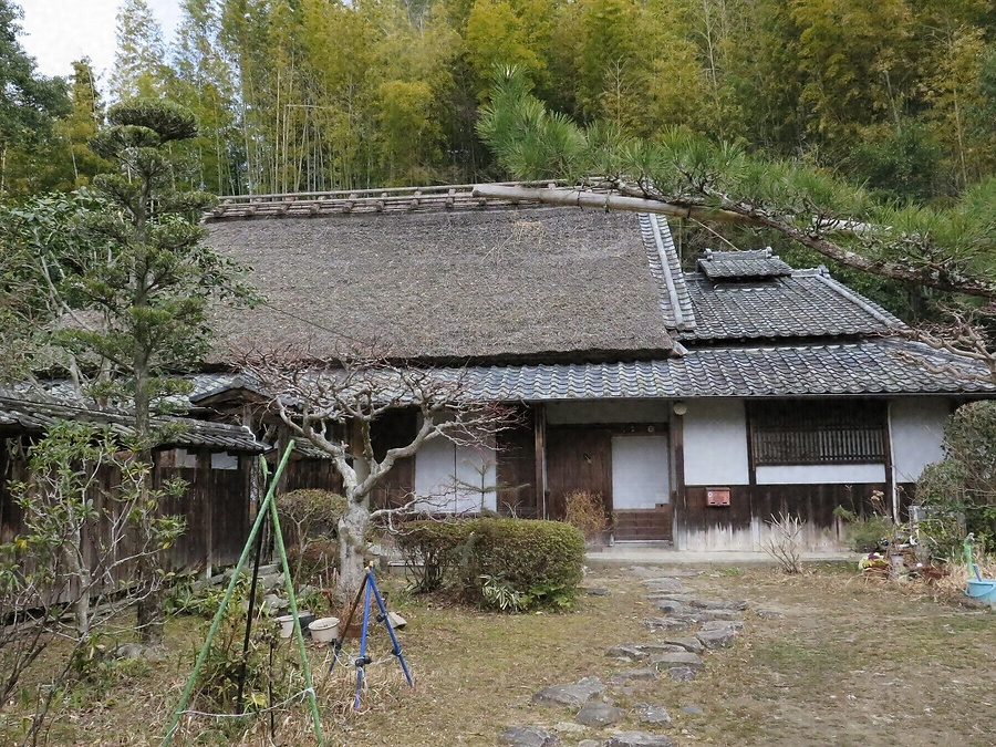 岩船寺から北麓の農村にある旧家の主屋。座敷側入母屋造、土間側落棟とする大和棟の茅葺民家。床上は六間取で、表に6畳3室の続き間座敷、裏は大小3室を並べる。大戸口脇と土間にイモグラを設け、七連竈は見応えがある。差鴨居を突止め溝にして古式を残す。