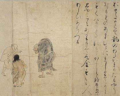 紙本著色病草紙断簡(背骨の曲がった男)