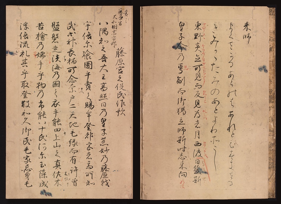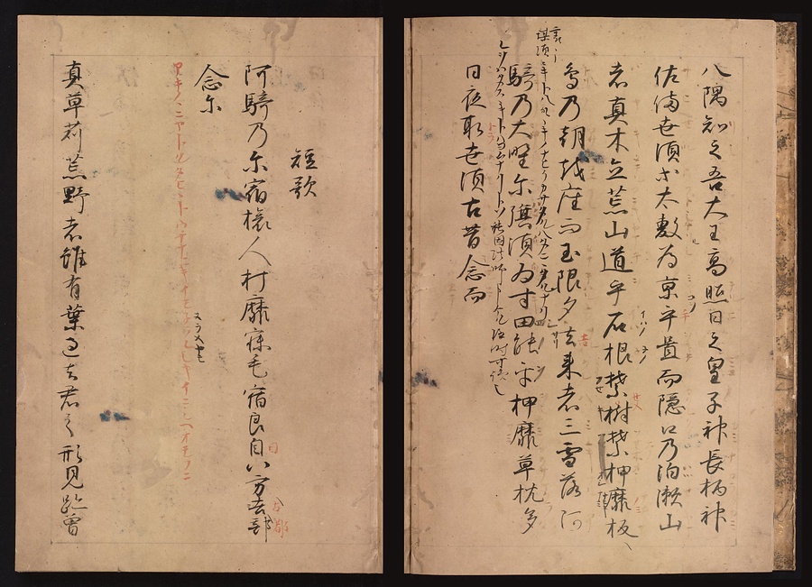 『万葉集』とは古代の和歌をあつめた日本最古の歌集であり、8世紀の後半頃にまとめられました。現在のこされている『万葉集』はいずれも平安時代以降に書き写されたもので、この元暦校本万葉集は元暦元年(1184)に校正作業が行われた写本です。