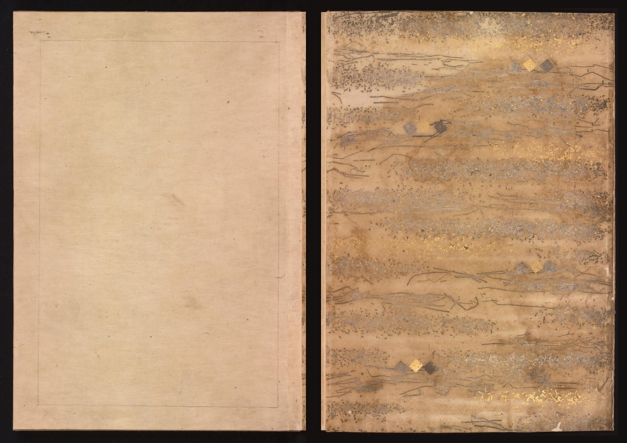 また紙自体も美しいもので、飛雲という紫と藍で染めた紙の繊維をすき込んだ鳥の子紙を用いています。