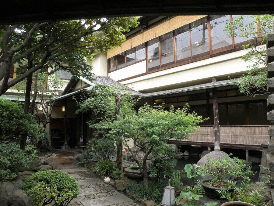 浅草雷門通の一筋南に位置する入母屋造料亭。敷地南の前庭を囲むL字形平面で、入隅を玄関、南面して座敷を並べ、北に住居部を配す。二階は三間続きの大広間を配し、床の間と舞台を設け、宴席の時代相を示す。随所に銘木や彫刻を飾る数寄屋意匠の料亭建築。