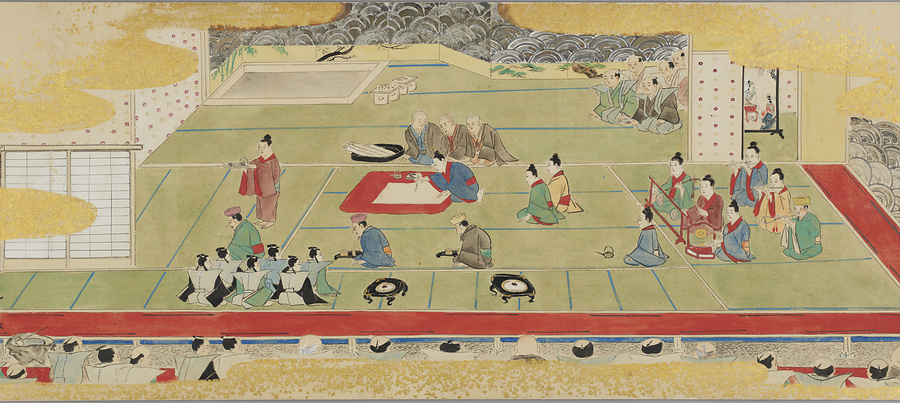 豊見城王子を正使とする琉球使節が江戸上りして、天保三年(1832)閏十一月二十二日に島津重豪の江戸芝高輪・白銀邸にて舞楽を行った時の様子を描いている。