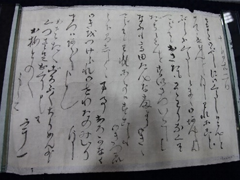 そなたはご無事にお暮しのこととめでたく存じます。私は元気に暮らしておりますのでご安心ください。おさだも障りなく育っていることと推察いたします。何事も高田様からお聞きください。私のことは少しもお気遣いなさらないでください。万事ぬかりなく気をつけてお世話されるようお頼みします。まずはあらあらかしく。おさだへごろふく、ちりめんを少々、靴一足をお送りします。