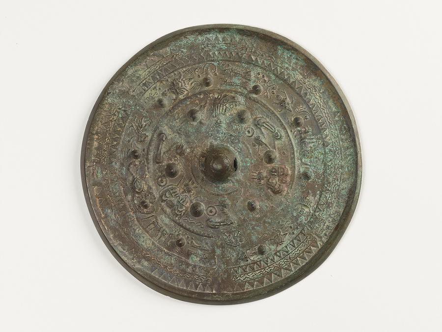 内区主文帯に6乳を置き、3神と3獣を交互に配置するが、一部は鋳上がりが悪く不明瞭である。外側の副文帯には9乳を配するが、間隔にばらつきがある。乳間には蛙や双魚、獣を置き、細線で弧文や円文を充填する。本品は、粗雑化したさまざまな特徴から仿製鏡と目される。また三重県美杉村出土とされるが、当地は山間部で古墳は存在していない。しかし、大和と伊勢を結ぶ交通の要衝であり、峠や集落境で行なわれた神まつりに伴う可能性も考えられる。