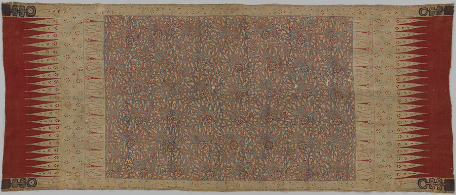 茜地花葉文様更紗装飾布