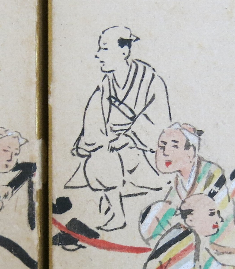 小型の6曲屏風に上下2段、計約450㎝にわたって、縦約36㎝の料紙に描かれている。表装の金地は新しく、元は絵巻物(もしくは折本)であった可能性も考えられよう。