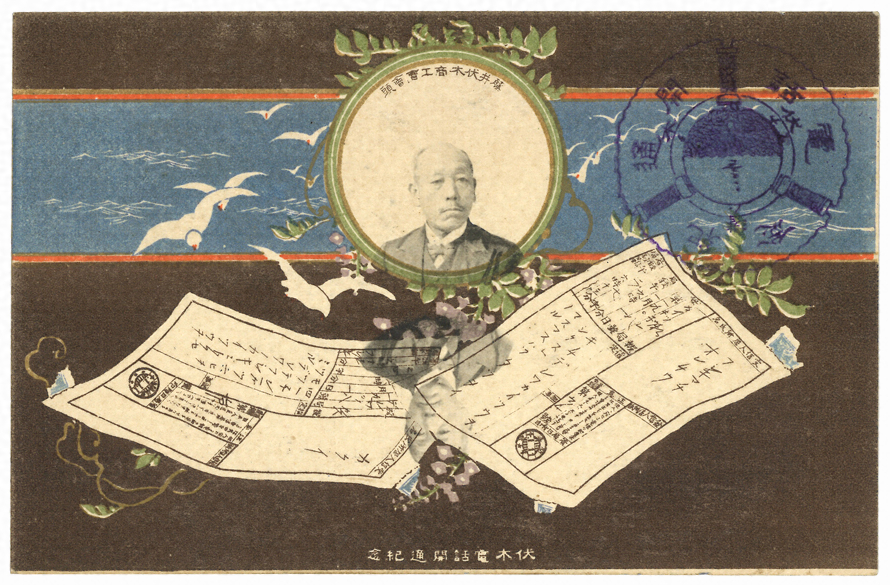 ②藤井(能三)伏木商工会会頭の写真と電報のイラスト