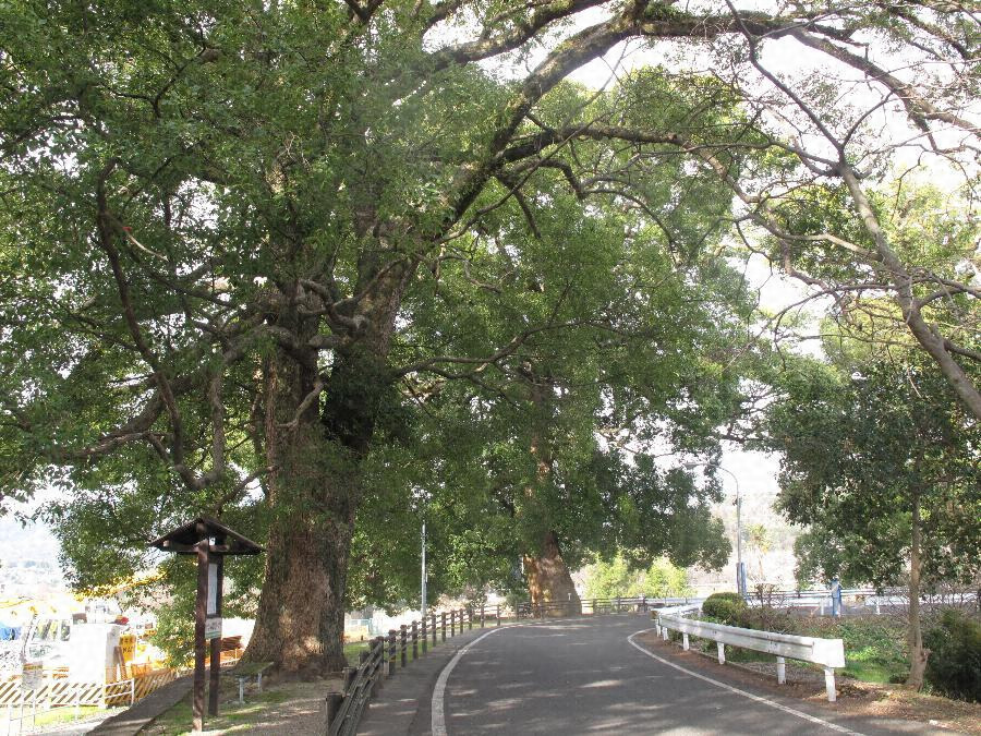 樹齢300年を超すと思われるクスノキの巨樹11本。最大のものは高さ30mに達する。