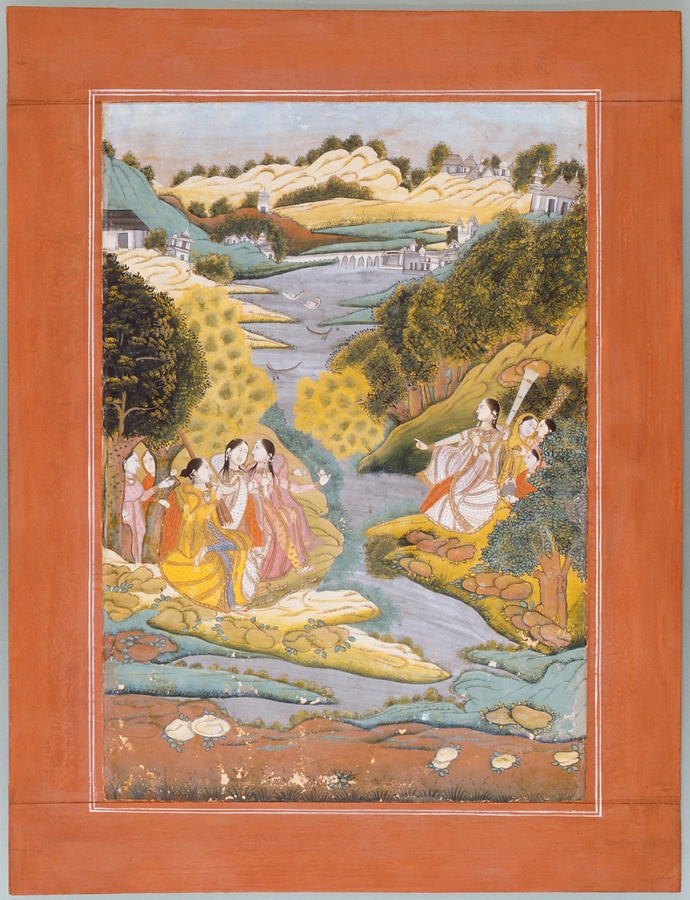 川岸で音楽を楽しむ女たち