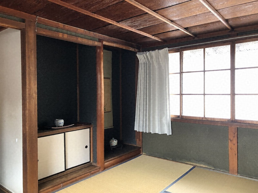主屋背後に建つ離れ。一部二階建切妻造桟瓦葺。一階南面は全面ガラス戸の廊下とし、北に六畳間、風呂場、脱衣、便所を配す。二階は竿縁天井、長押、床を備える六畳間とする。内外に結霜ガラスを用い、ガラス戸が並ぶ開放的な外観が敷地中央の景観を形成。