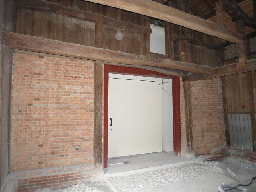 本蔵の東、ムロマエの南面に接続。木造平屋建切妻造桟瓦葺で、水路石積上に御影石の布基礎を廻し、高さ三メートルまで煉瓦積の壁を木造軸組の外面に化粧で現す。上部は竪板張で南面上部に開口を開ける。小屋組はキングポストトラス。敷地南東の景観を形成。