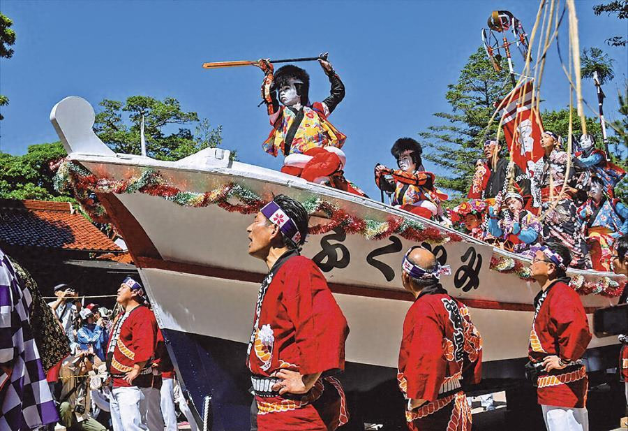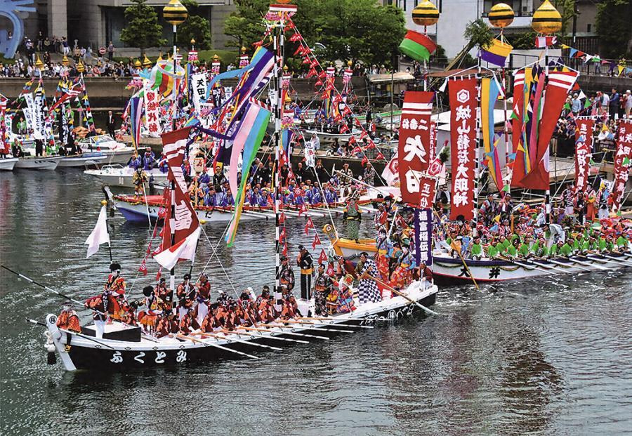 松江のホーランエンヤは、島根県松江市にある城山稲荷神社の船祭である。10年に一度の式年祭において、華やかに飾られた大船行列が神霊をともない往還する。馬潟、矢田、大井、福富、大海崎の5地区は「五大地」と呼ばれ、神輿船の曳船となる櫂伝馬船を繰り出す。この五大地を中心とするホーランエンヤ五大地連合保存会が、この船祭を伝承している。櫂伝馬船は、馬潟のものが最大で全長15メートル、幅3メートルで、片側が8丁櫂である。帆柱の先端に金色の宝珠を飾り、色とりどりの幟旗や吹流しをなびかせる。櫂伝馬船には総勢50人ほどが乗り込み、ホーランエンヤの舟唄や太鼓に合わせて船上で櫂伝馬踊りが奉納される。祭礼は、渡御祭、中日祭、還御祭の順で、9日間にわたる。初日の渡御祭では、10キロメートルほど離れた御旅所の阿太加夜神社まで船渡御が行われる。船行列は、100艘以上の大船団による1キロメートルに及ぶもので、大橋川、中海、意宇川を進む。中日祭では、車輪の付いた陸船に乗り換えて阿太加夜神社までの陸路を進む。還御祭では、阿太加夜神社を発して再び大船行列で進み、城山稲荷神社に戻る。