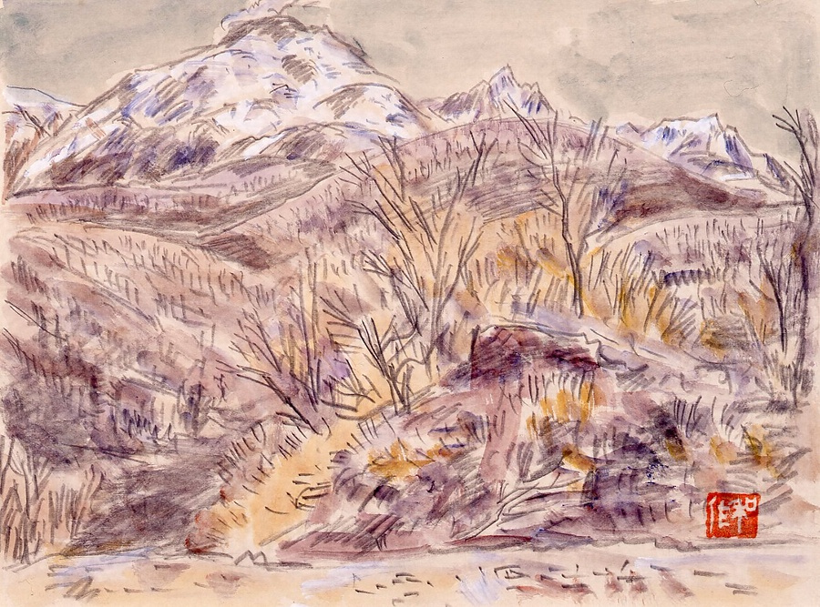 鉛筆・水彩・紙/額装