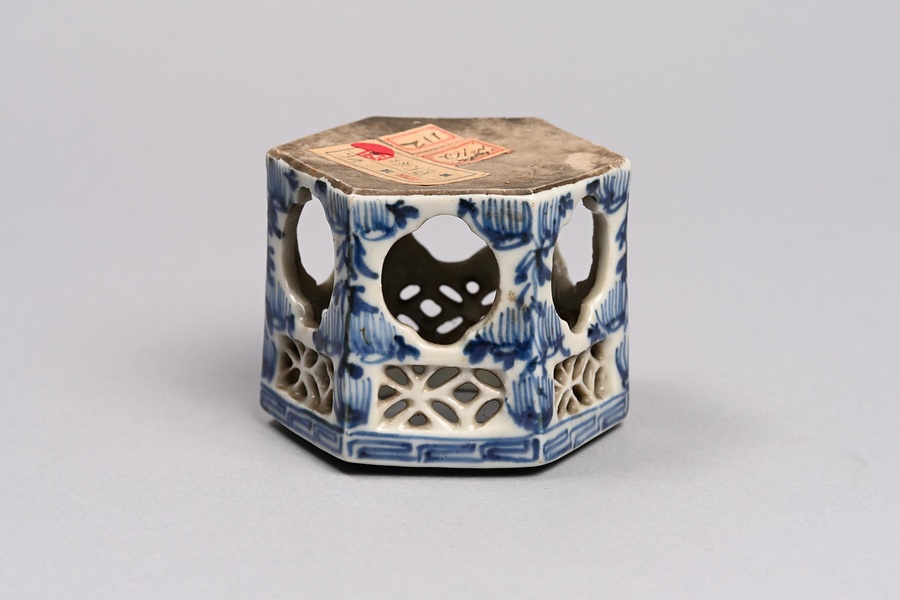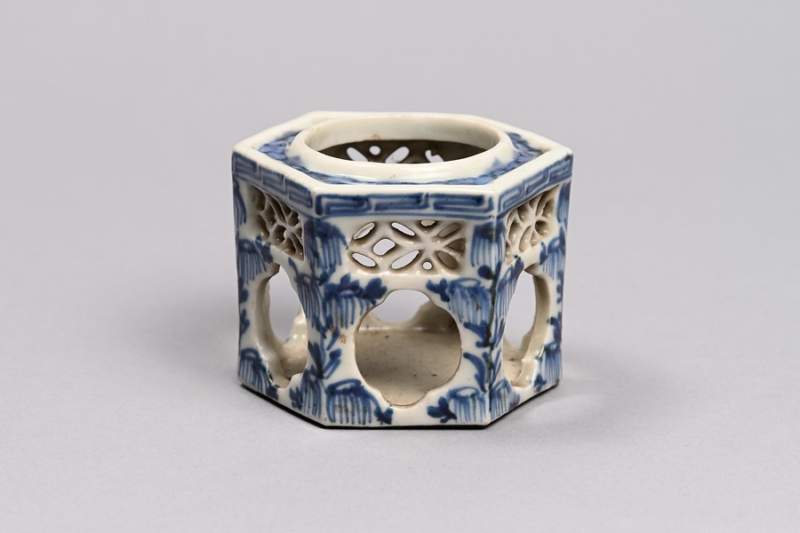 染付透彫六角盃台